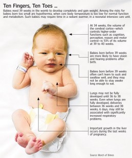 I saw this picture today and had to share! So often we feel comfortable making choices about the timing of the birth of our babies. We believe what we're being told that babies born before 39 weeks is really okay. We believe that if our babies are born before 39 weeks that they, most likely, are fully developed and all is well for their birth to come. Sad part about that last sentence is that moms are choosing to induce based solely on their personal discomfort.